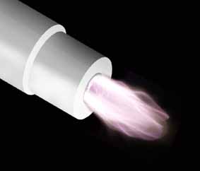 滑動電弧放電等離子體通常應用于材料的表面處理和有毒廢物清除和裂解。下圖中的滑動電弧由一對像圖中所示的延伸弧形電極構成。電源在兩電極上施加高壓引起電極間流動的氣體在電極最窄部分電擊穿。一旦擊穿發(fā)生電源就以中等電壓提供足以產生強力電弧的大電流,電弧在電極的半橢圓形表面上向右膨脹,不斷伸長直到不能維持為止。電弧熄滅后重新起弧,周而復始。其視覺觀看滑動電弧放電等離子體就像火焰一般,但其平均溫度卻比較低即使將餐巾紙放在等離子體焰上也不會燃燒。它又被稱為“索梯”(Jacog's Ladder)?;瑒与娀》烹姰a生的低溫等離子體為脈沖噴射,但可以得到比較寬的噴射式低溫等離子體炬(plasma torch)。