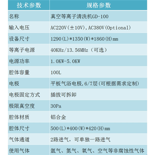 100L工業(yè)等離子清洗機(jī)GD-100 技術(shù)參數(shù)